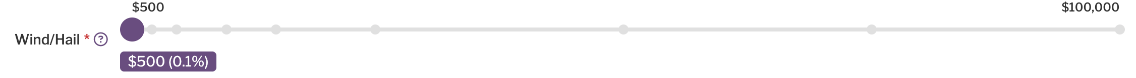 This deductible refers to the out-of-pocket expense that the customer will pay towards damages or a loss in the event of a covered loss caused by wind or hail. The deductible amount is subtracted from the claims settlement when a claim is covered and paid.