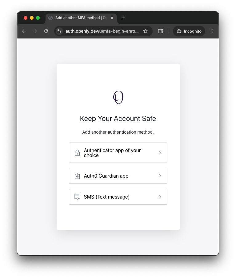 - Mobile authenticator app such as Okta, Google Authenticator, or Microsoft Authenticator